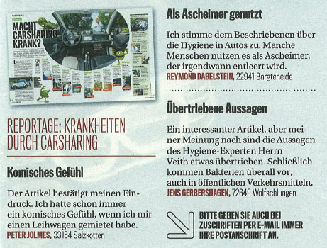 Krankheitserreger in Carsharing Autos / Nr. 32 vom 07.08.2015